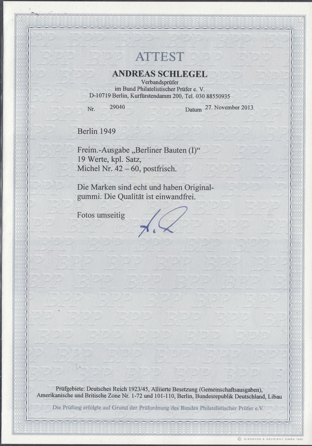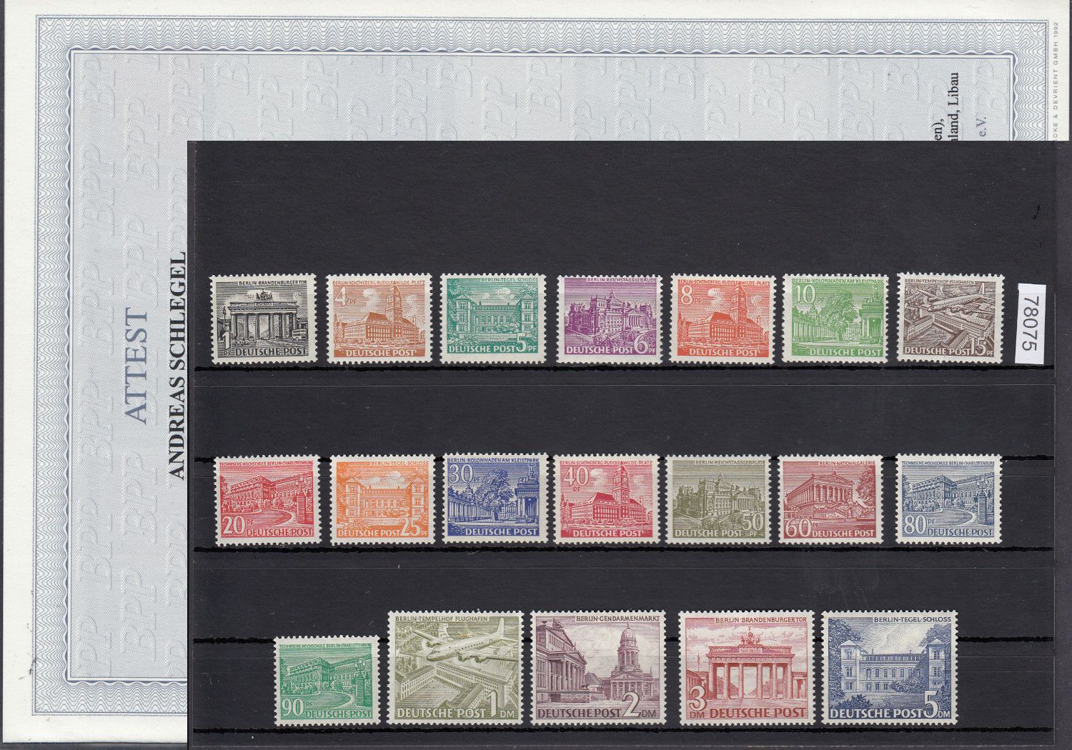 Bauten 1949, kompletter Satz in postfrischer Erhaltung. Fotoattest Schlegel BPP Die Qualität ist einwandfrei. Mi. 750.-. **. Sie bekommen den abgebildeten Artikel
