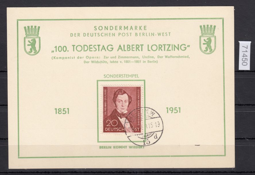 100. Todestag von Albert Lortzing Gestempelt, Sie erhalten den abgebildeten Artikel