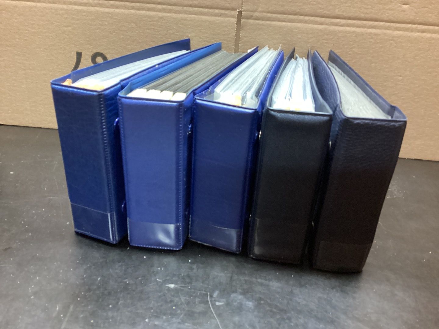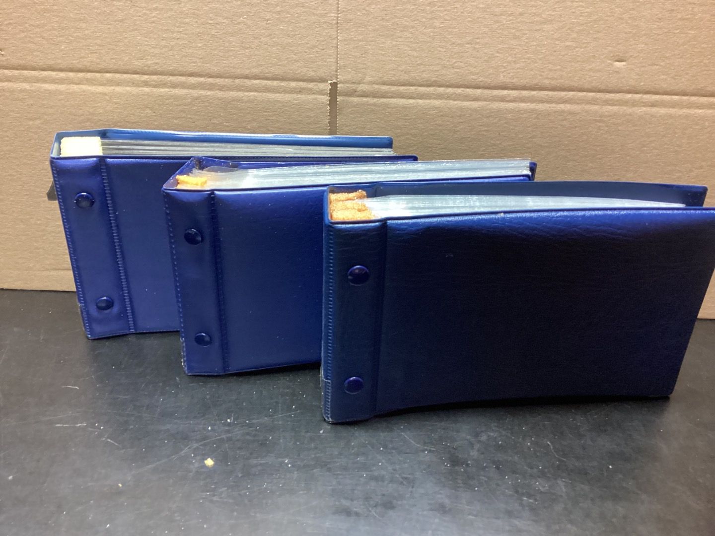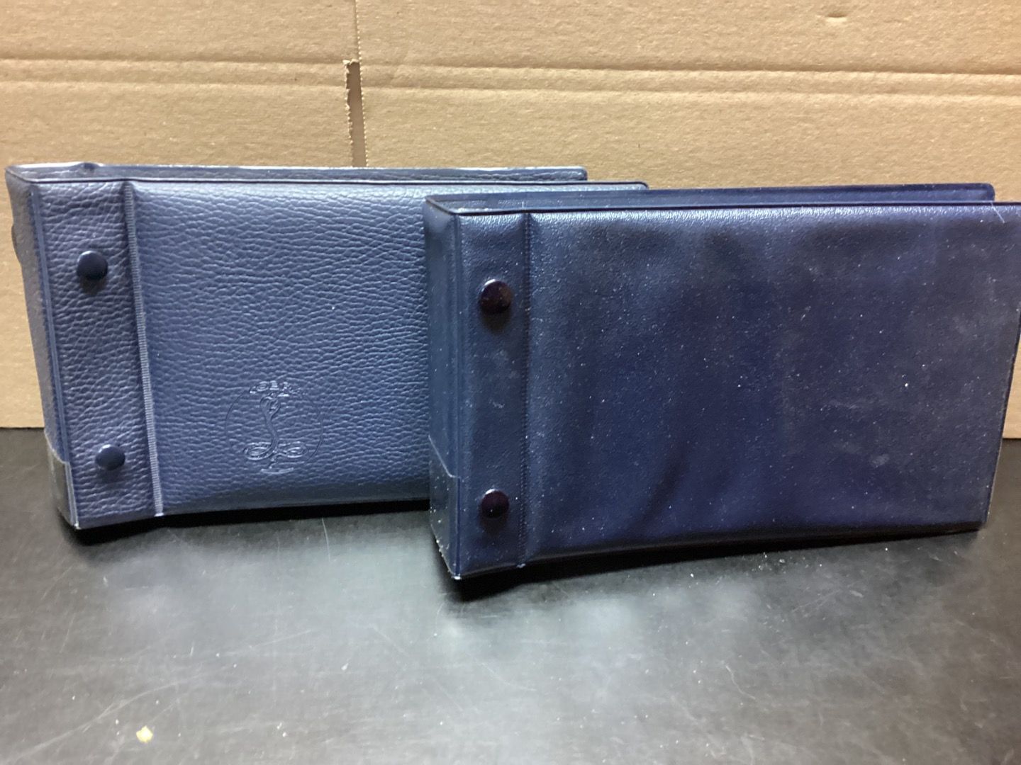 Kleine Alben für normale Briefe mit klaren Taschen aus Folie mit/ ohne schwarzen Kartonzwischenblatt. 5 Alben mit Druckknopfverschluss, Mit kleinen Mängeln,z.B. Kartonzwischenblatt fehlt, Aufkleber ,verschiedener Anzahl an Folien.Gut erhalten mit Gebrauchsspuren.Sie erhalten den abgebildeten Artikel.Mehrfach bestellen nur einmal Porto.