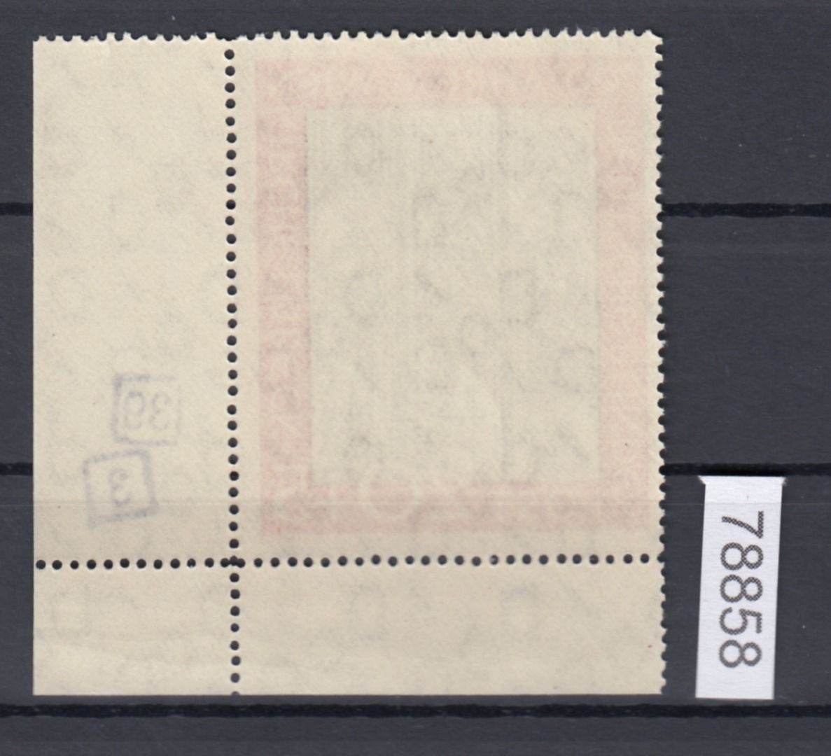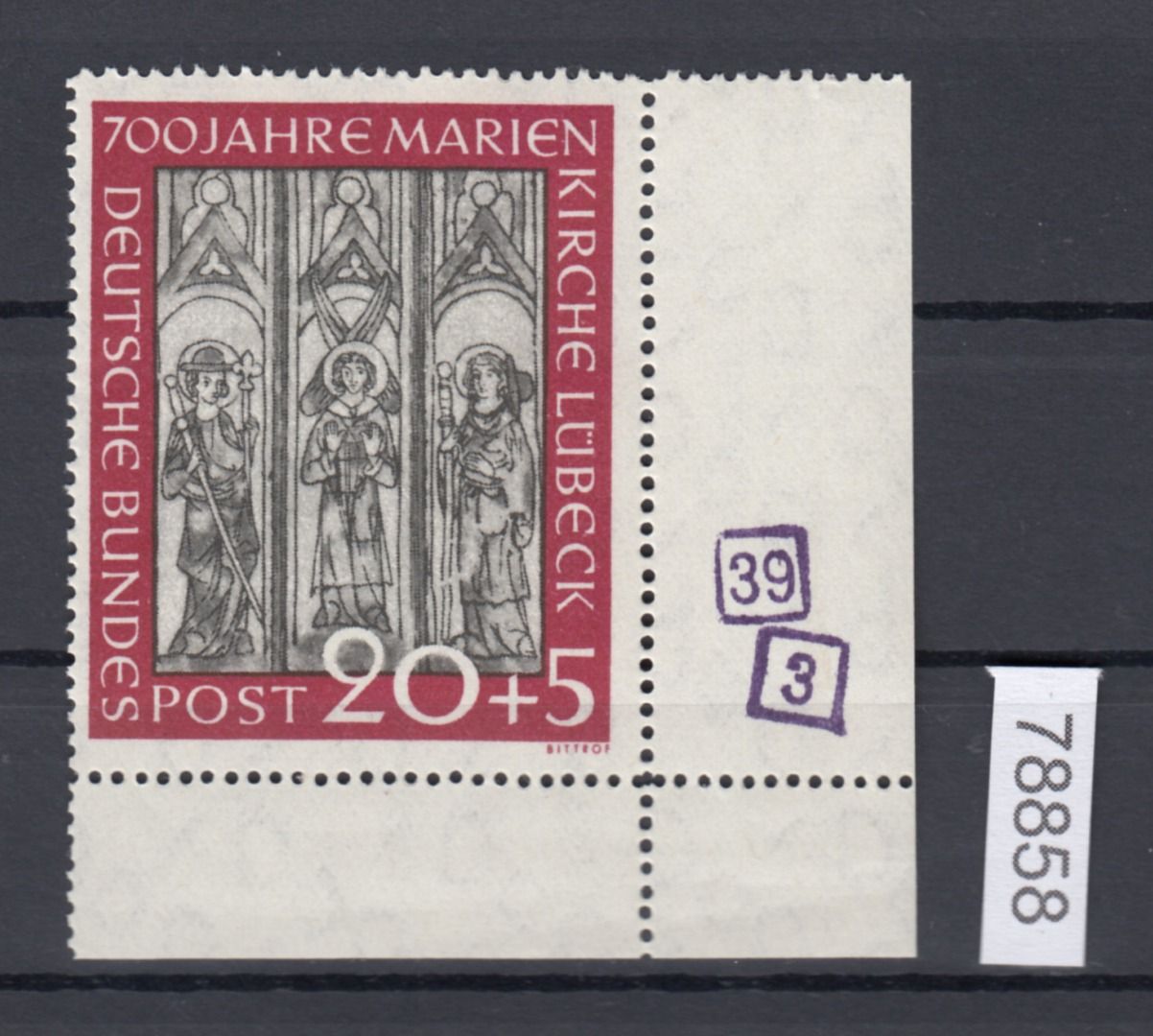 1951, 20+5 Pfg. Marienkirche, postfrisches Exemplar aus der unteren rechten Bogenecke mit zwei Bogenkontrollstempeln, Unterrand etwas bügig, sonst einwandfrei