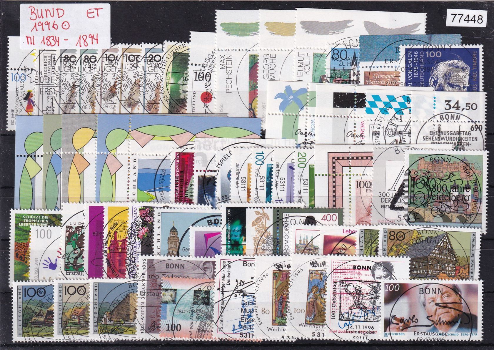 Bund 1996, Mich.-Nr.: 1834-1894 Gestempelt Bonn Komplett LUXUS  Zentrisch Ersttag