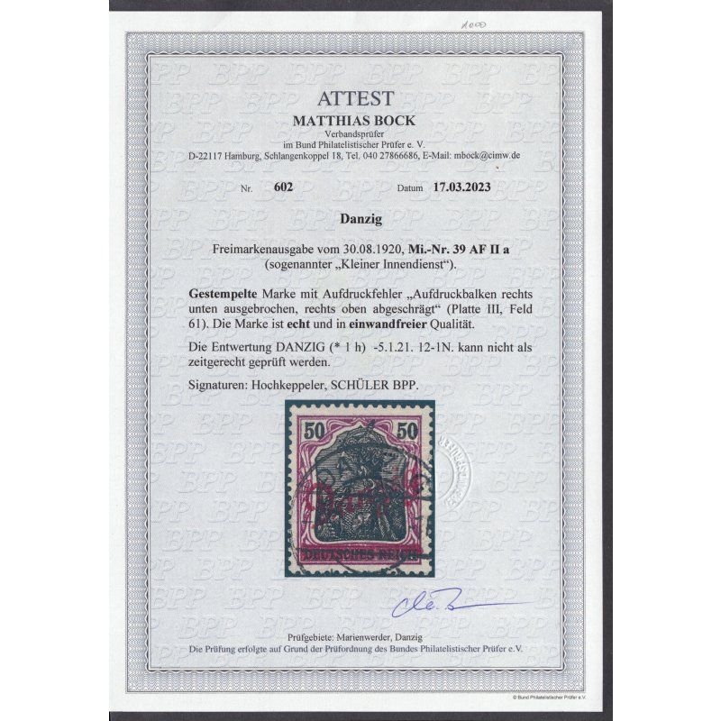 50 Pf. kleiner Innendienst 1920, sauber gestempelt (Gefälligkeitsentwertung). befund Bock BPP einwandfrei. ca. Mi. 700,-. . Sie erhalten den abgebildeten Artikel