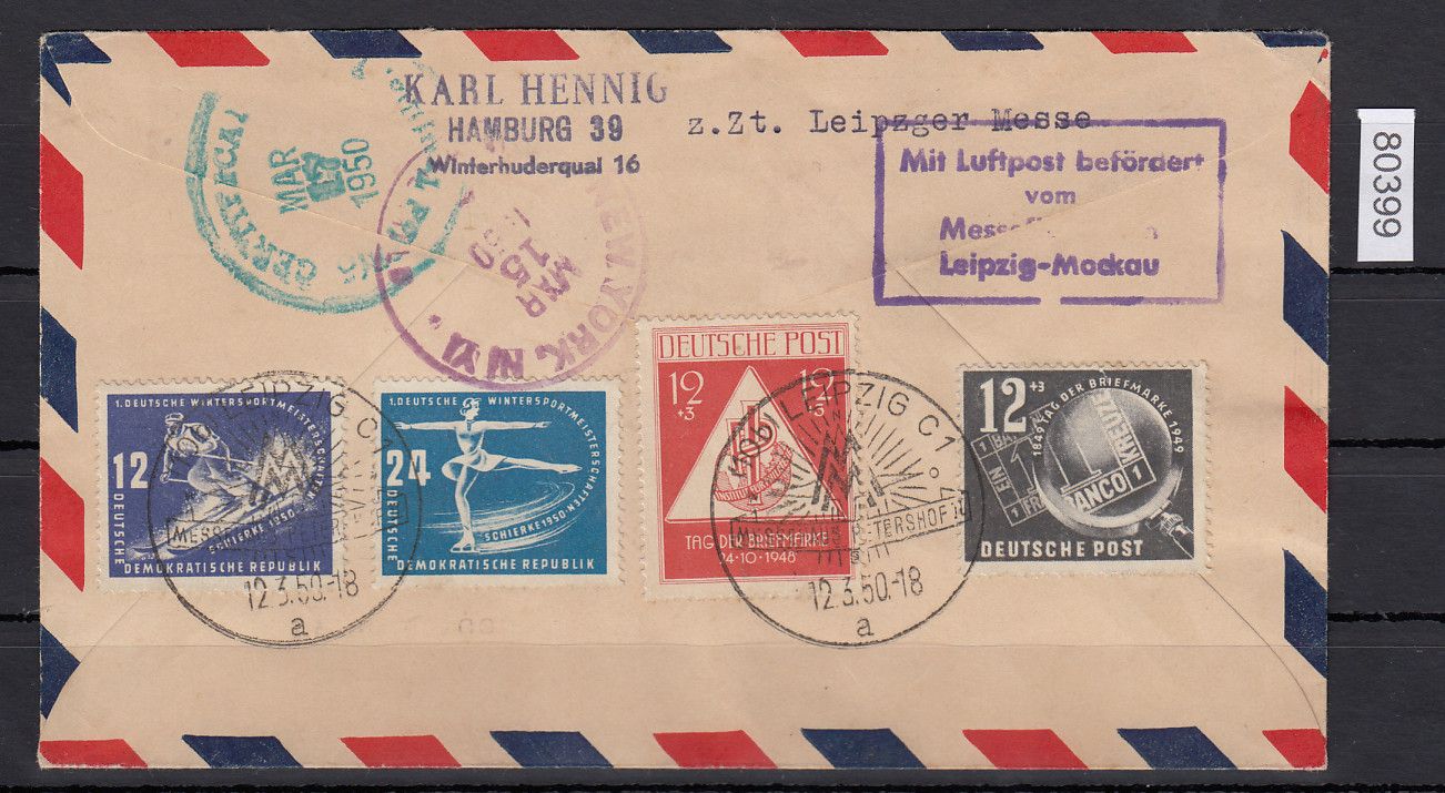 DDR 1950, Mich.-Nr.: 248+49 gest. Leip. Messe   auf Brief  Luftpost / Dominikanisch Rep