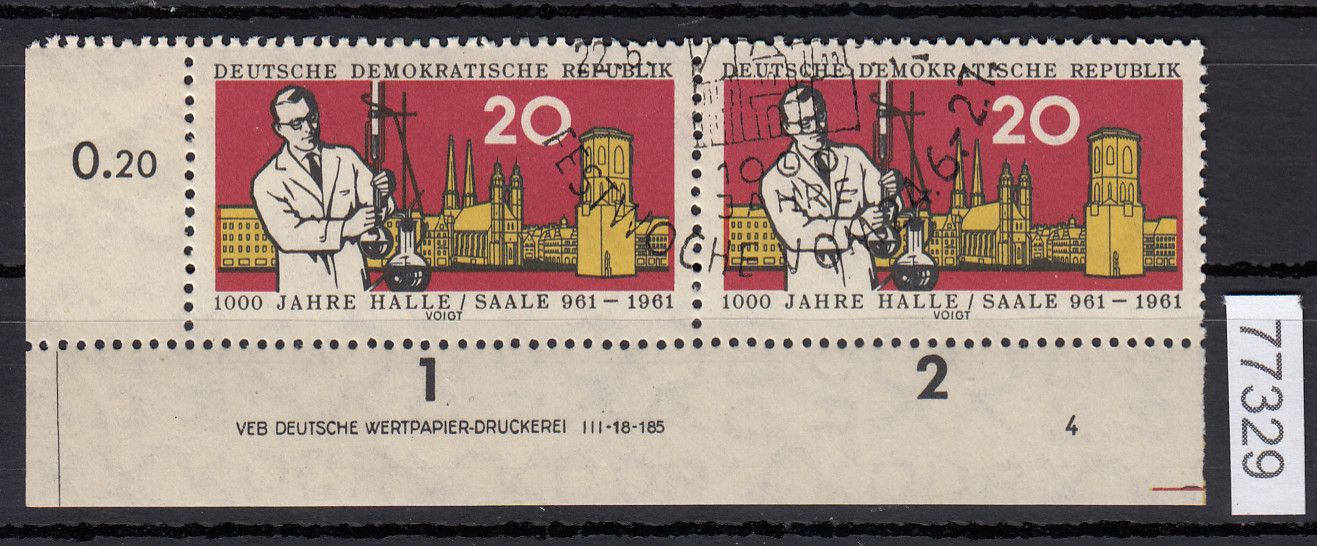 DDR 1961, Mich.-Nr.: 834 gestempelt DV  FNr. 4   Eckrand  Druckvermerk