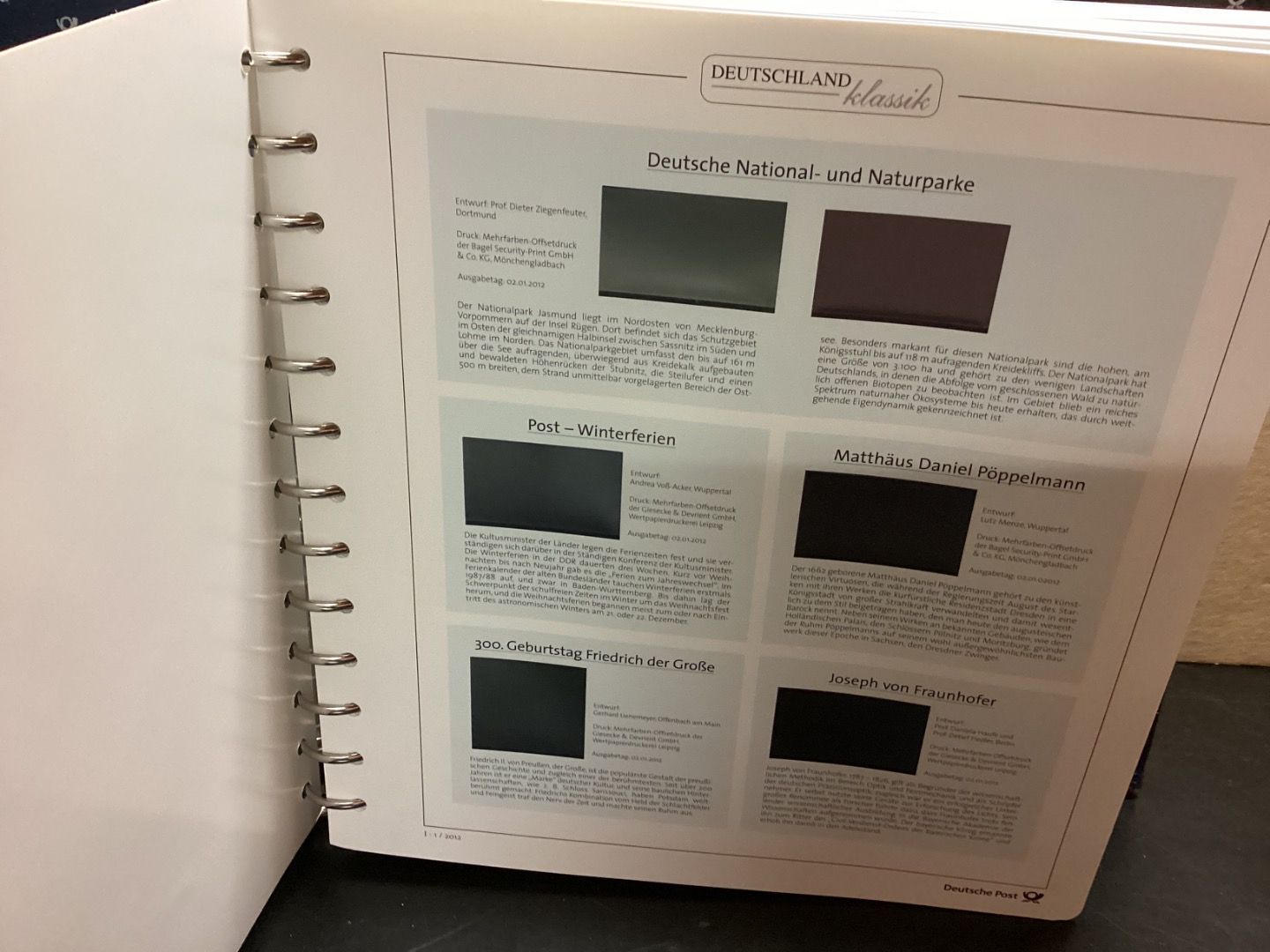 Alben der Deutschen Post mit den Vordrucken für je eine Marke (nach Michel) mit den entsprechenden Beschreibungen zu jeder Briefmarke mit schwarzen Klemmtaschen.Gebraucht mit geringen Gebrauchsspuren, Gut erhalten.Sie erhalten den abgebildeten Artikel.Mehrfach bestellen,nur einmal Porto.