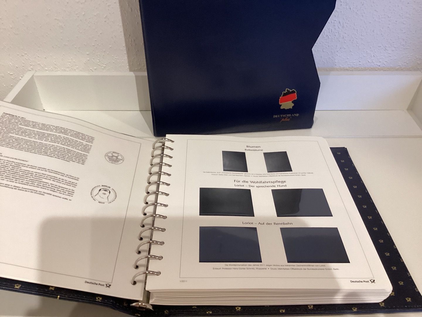 Alben der Deutschen Post mit Vordrucken Bund ,schwarze Klemmtaschen für Eckrandmarken postfrisch und gestempelt zusammen. Ohne Marken. Ringbinder + Kassette.Hochwertiges,lederähnliches Material . Stabile 13-Ring-Mechanik.Hersteller ist Leuchtturm. Sie erhalten den abgebildeten Artikel. Mehrfach bestellen, nur einmal Porto.