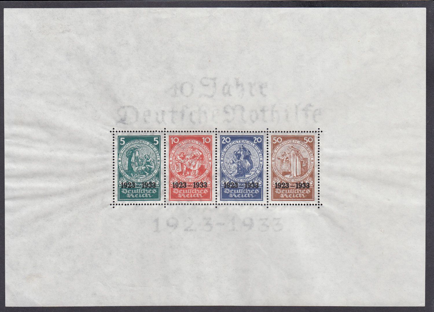 Nothilfe-Block 1933, ungebrauchter Block in Originalgröße, Blockmarken postfrisch und auch geprüft geprüft Schlegel BPP. Mi. 1.500,- Sie bekommen den abgebildeten Artikel