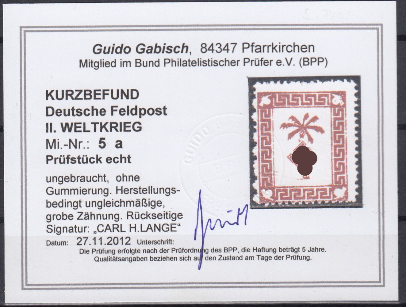 Tunis-Päckchenmarke 1943, ungebraucht ohne Gummi, sehr gute Erhaltung, geprüft Gabisch mit Befund "echt " Mi. 200,-