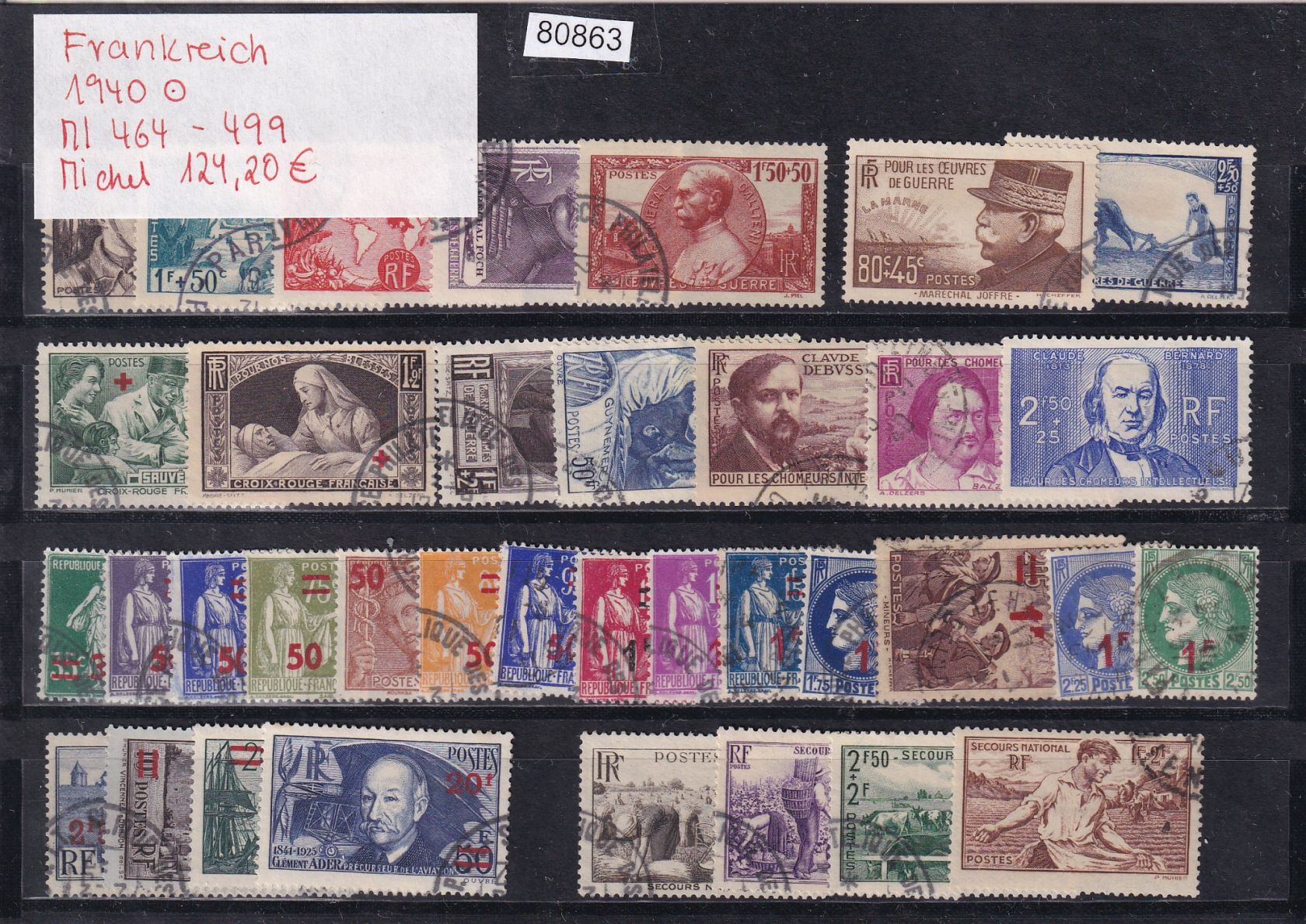 Frankreich 1940 : Mi.-Nr.: 464-499 gestempelt Komplett