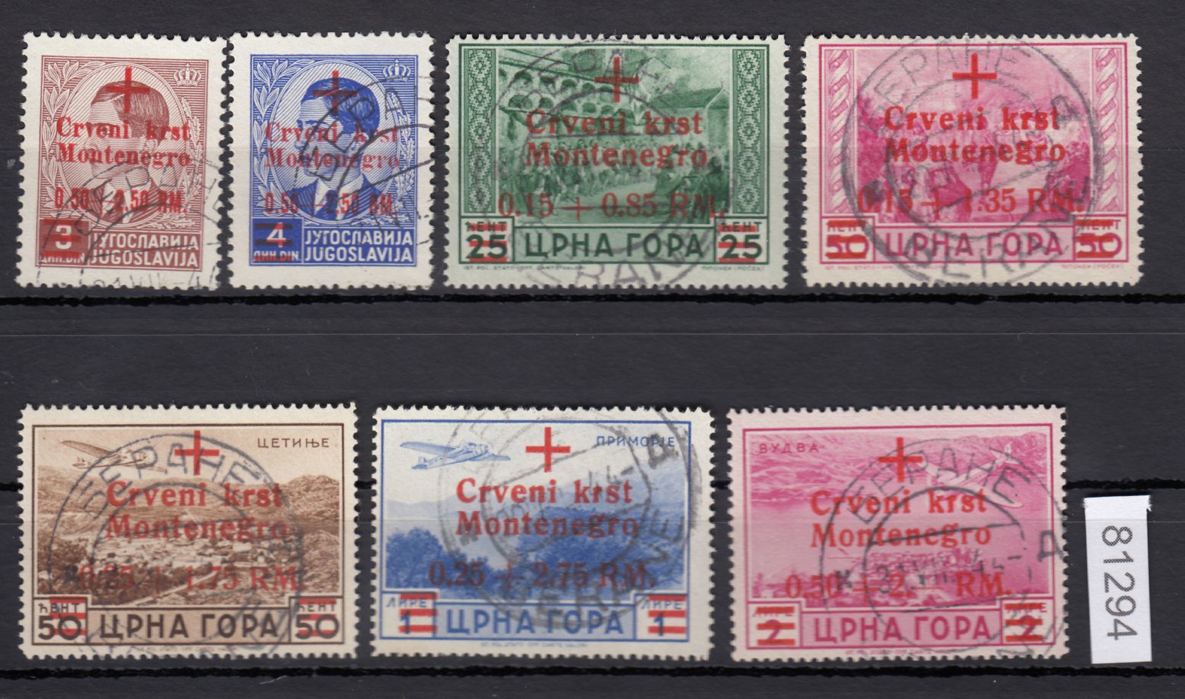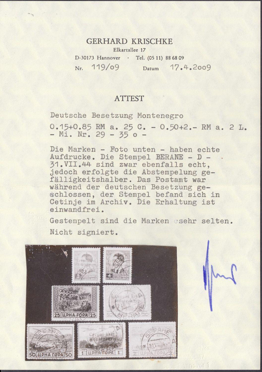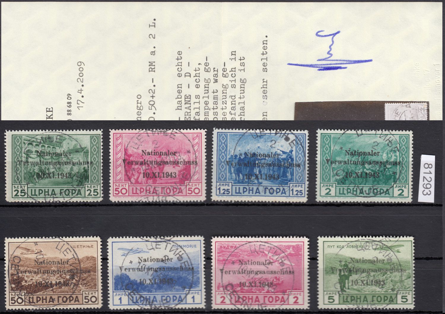 Montenegro, Mi.-Nr. 29-35 gestempelt geprüft Attest   "einwandfrei"