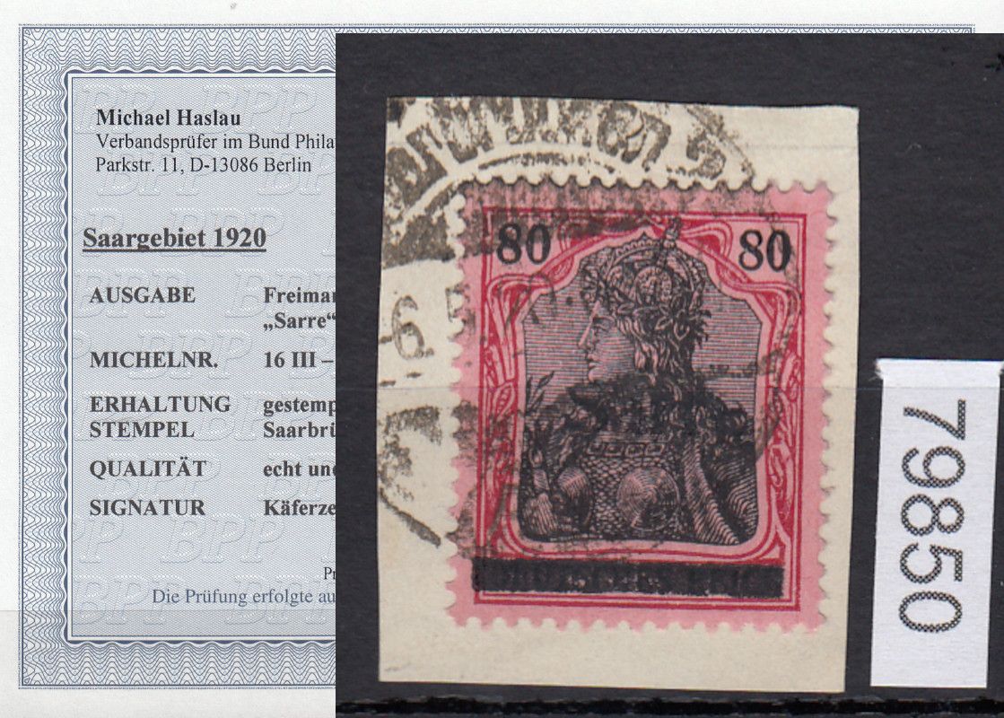 Saargebiet 1920 Mi. Nr. 16 III gestempelt geprüft Befund