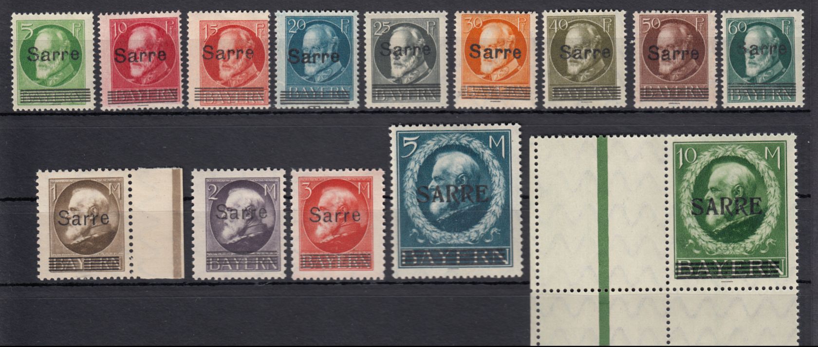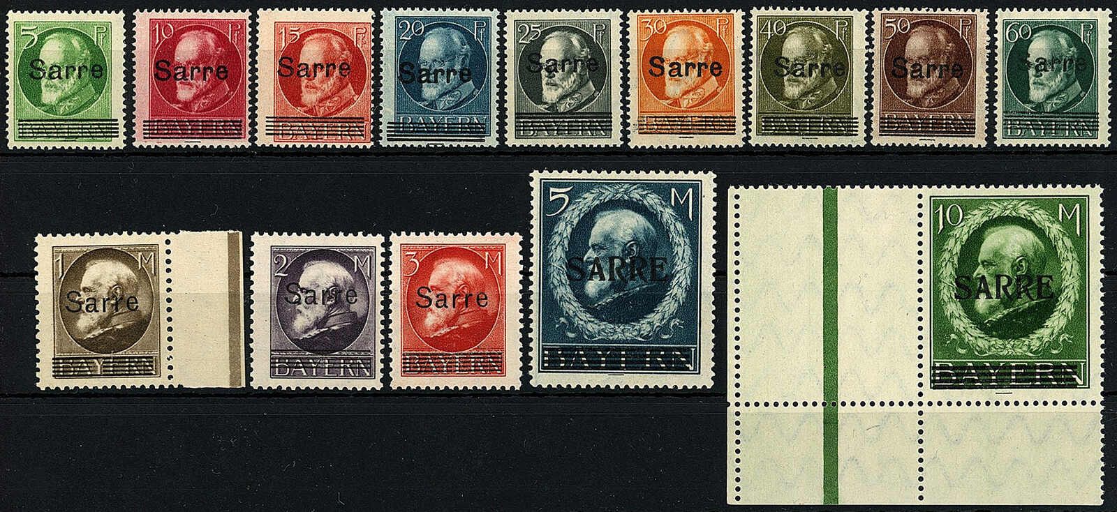 5 Pf. - 10 M. Freimarken 1920, kompletter Satz in postfrischer Erhaltung, die 10 M. links mit Leerfeld, jeder Wert tiefst geprüft A. Burger BPP. Mi. 3.300,-€.