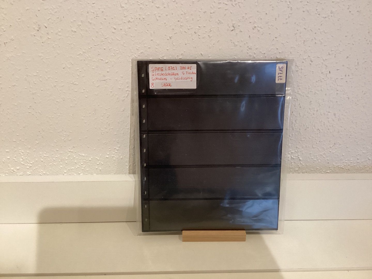 SAFE  Variant Nr.875 Einsteckblätter ,5 Taschen .Beidseitig nutzbar .Zum individuellen Aufbau und Gestalten Ihrer Sammlung .8 Stück. Gute Erhaltung mit geringen Gebrauchsspuren.11  Ring- System .Sie erhalten den abgebildeten Artikel. Mehrfach bestellen nur einmal Porto.