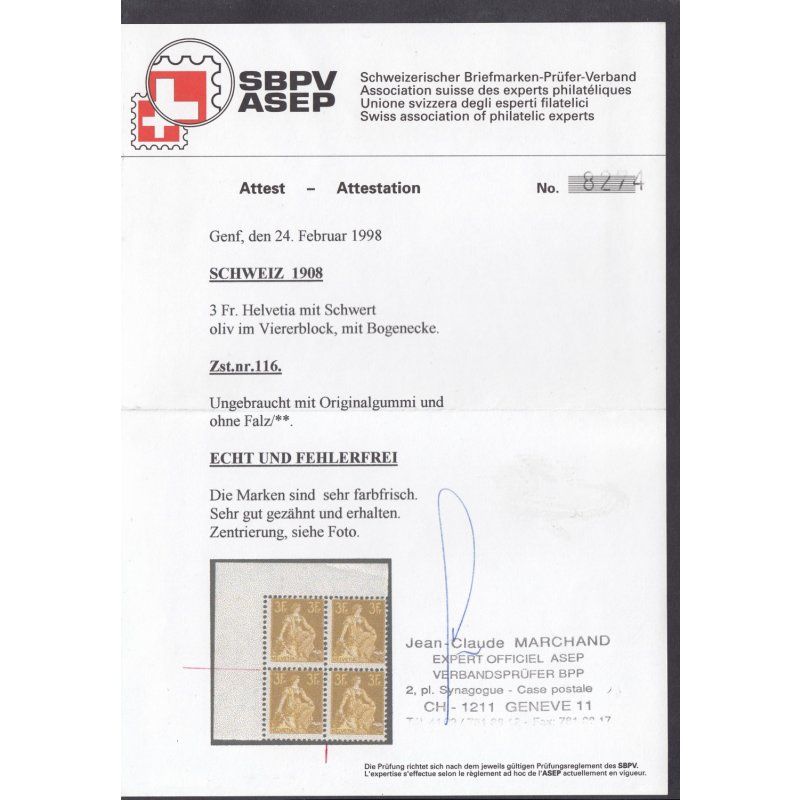 Postfrisch original gummi einwandfrei höchstwert 110 mit Attest noch für 4er.Block Michel 1300,00 Sie bekommen den abgebildeten Artikel