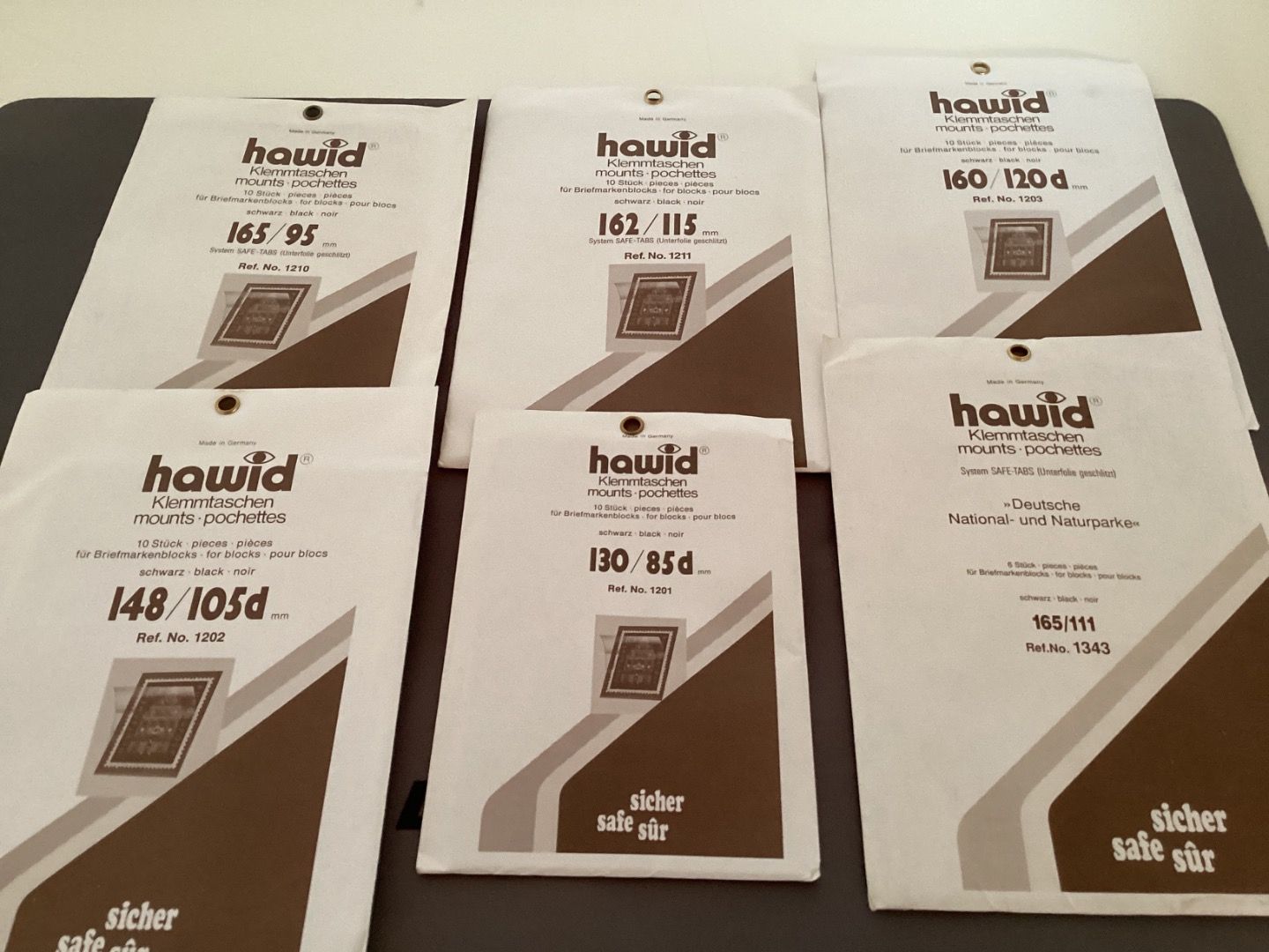 NEU, ungeöffnet aus Lagerbestand. Verschiedene Größen für Blocks. Jeweils Jeweils 10 Stück pro Verpackung/ 165/111 6 Stück/Packung..Farbe : schwarz.Das d bedeutet : Doppelnaht, oben und unten geschlossen.Schutztaschen halten die Marken,sicher fest und bieten max. Schutz vor Festkleben,Staub und Feuchtigkeit.Sie erhalten den abgebildeten Artikel.Mehrfach kaufen,nur einmal Porto.