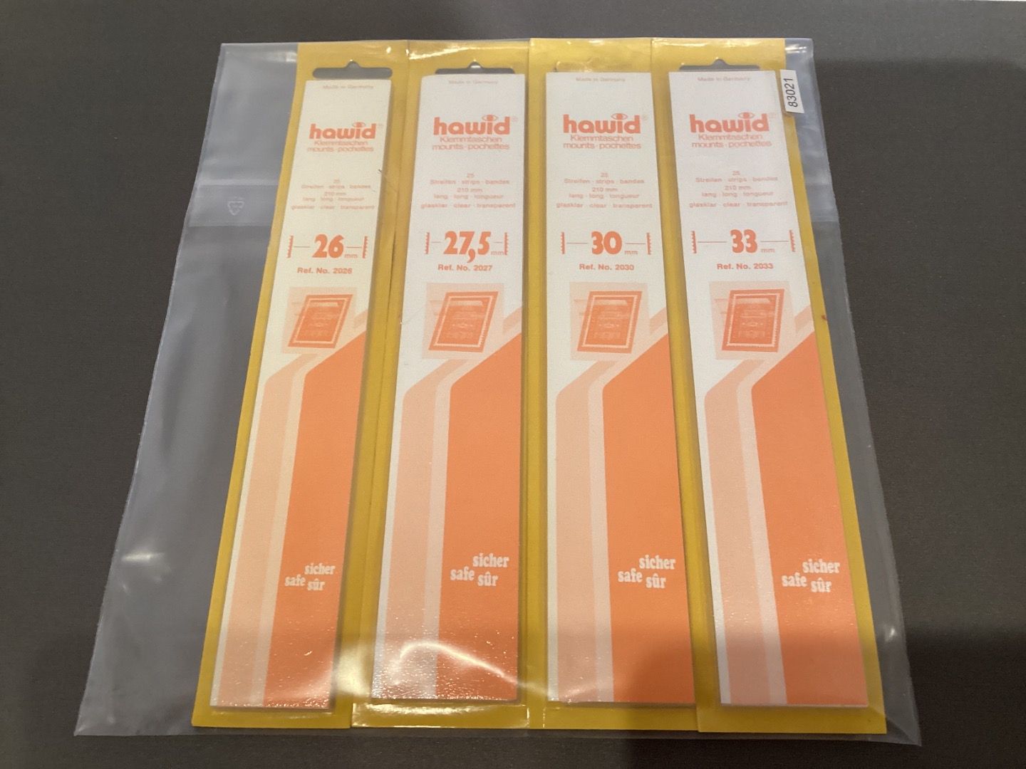 NEU, ungeöffnet aus Lagerbestand. Verschiedene Größen.Die Streifen sind 210 mm lang und können auf das gewünschte Maß geschnitten werden. Jeweils 25 Streifen pro Verpackung.Farbe : transparent.Schutztaschen halten die Marken,sicher fest und bieten max. Schutz vor Festkleben,Staub und Feuchtigkeit.Sie erhalten den abgebildeten Artikel.Mehrfach kaufen,nur einmal Porto.