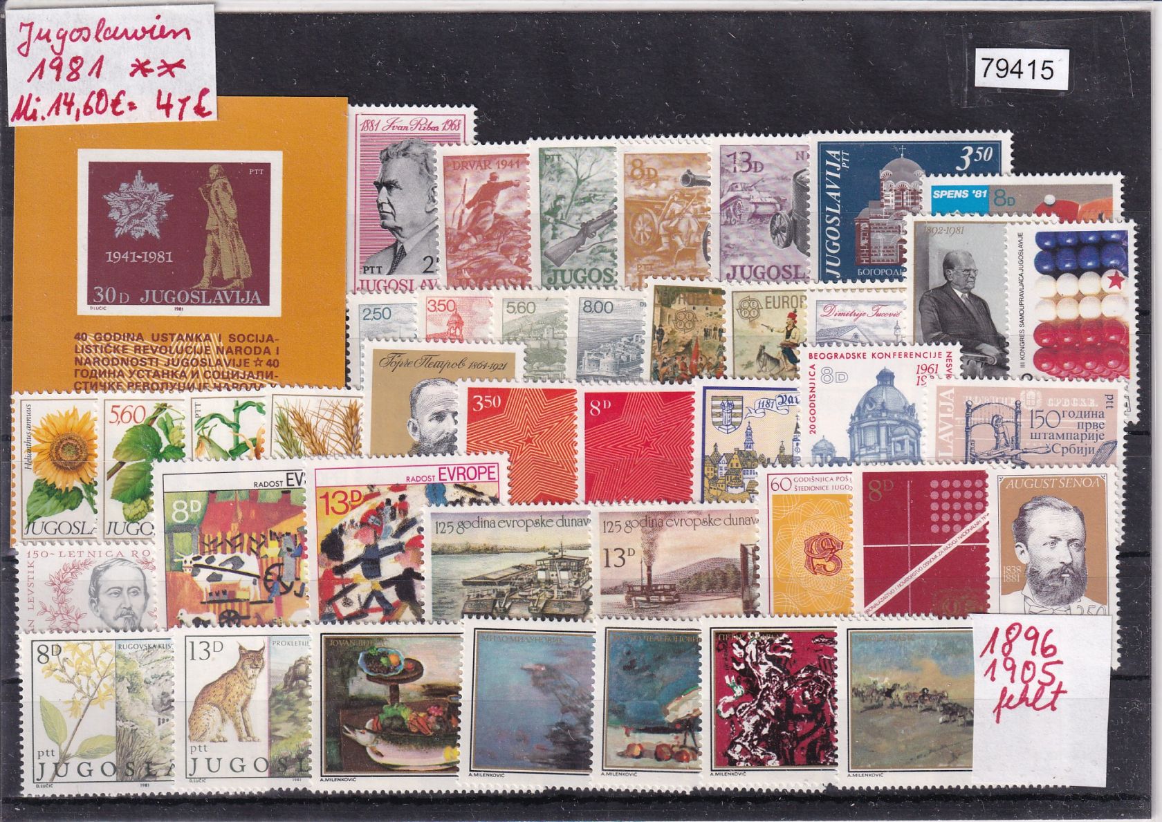 Jugoslawien 1981, Mich.-Nr.: ** komplett 1896 + 1905 fehlt