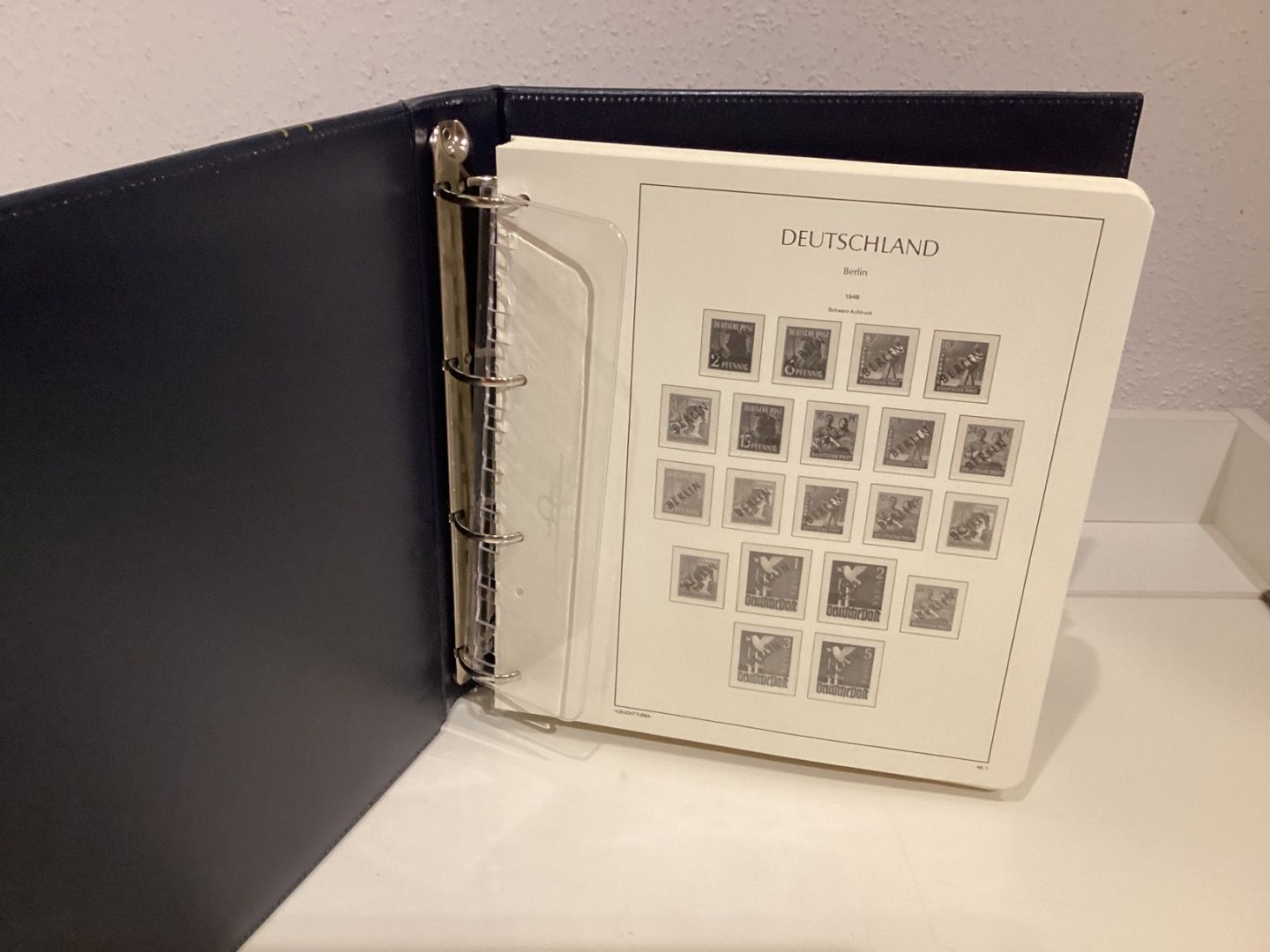 Leuchtturm Rinbinder ( 4 Ringe) mit geprägter Landkarte, Wappen und Bezeichnung "Berlin" auf dem Deckel.Im Lieferumfang enthalten Vordrucke Berlin 1948-90. Sämtliche Vordruckblätter mit passgenauen Klemmtaschen. Sie erhalten den abgebildeten Artikel.Mehrfach bestellen,nur einmal Porto.