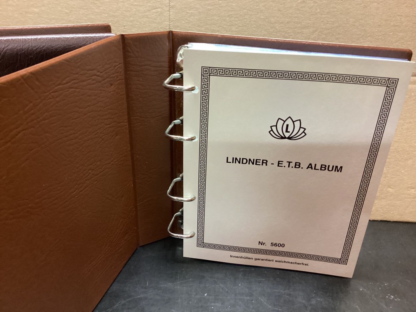 ERB-Album mit Klarsichthüllen. Wattierter Ringbinder ( 4-Ring-Mechanik) mit geprägtem Goldlogo auf dem Deckel und Rücken sowie geprägte Goldstreifen auf dem Rücken.Format Ringbinder: 194x228x50 mm. Sie erhalten den abgebildeten Artikel.Sehr guter ,gebrauchter Artikel mit geringen Gebrauchsspuren. Mehrfach bestellen,nur einmal Porto.
