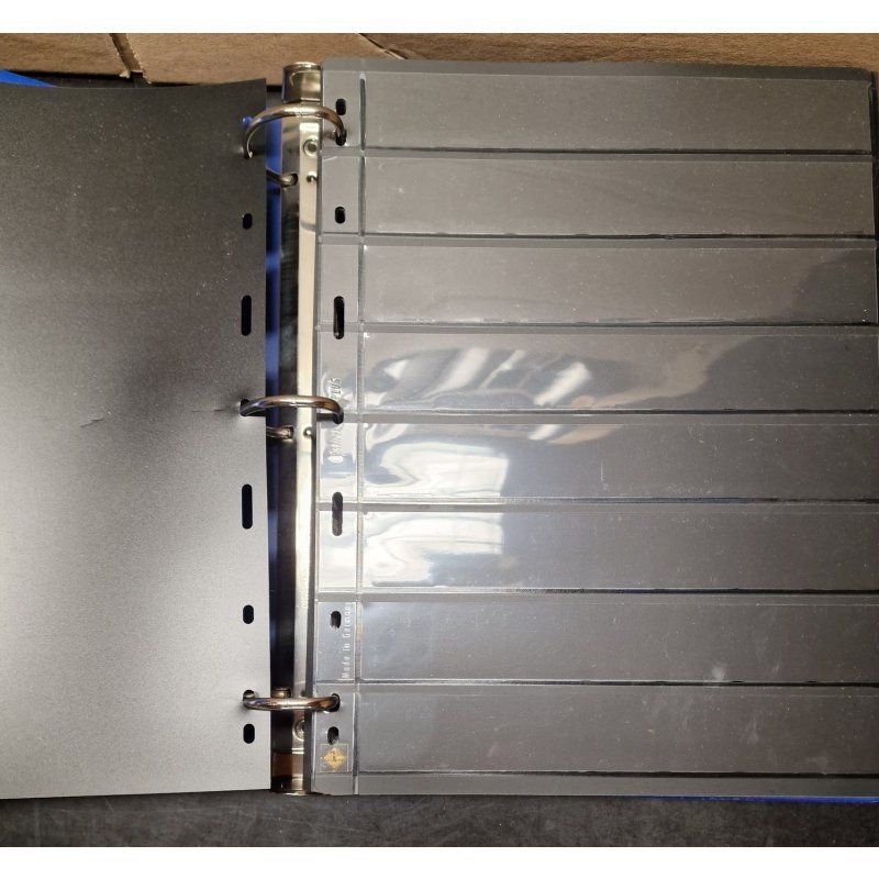 Gut erhalten mit Blattheber . Gebraucht mit geringen Gebrauchsspuren. Ringbinder in blau aus geschäumter Kunstoff-Folie und glatter Oberfläche,unwattiert mit Kassette. 3-Ring-Mechanik.Zusätzlich mit 60 schwarzen PVC- Blättern mit 8 Einsteckstreifen, die von beiden Seiten bestückt werden können. Mehrfach Bestellen nur ein mal Versand bezahlen. Sie erhalten den abgebildeten Artikel