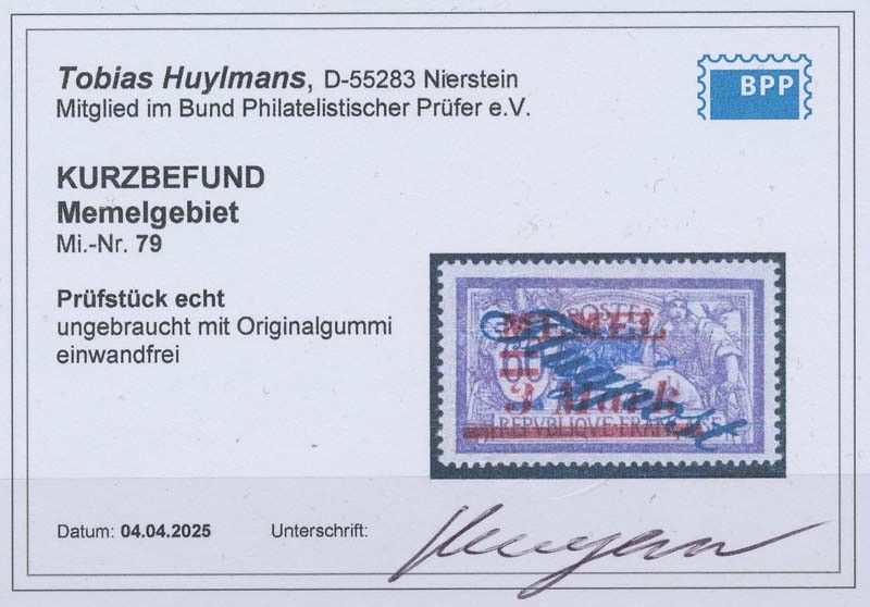 Memel 1922 Mi. Nr. 79 * geprüft  Befund
