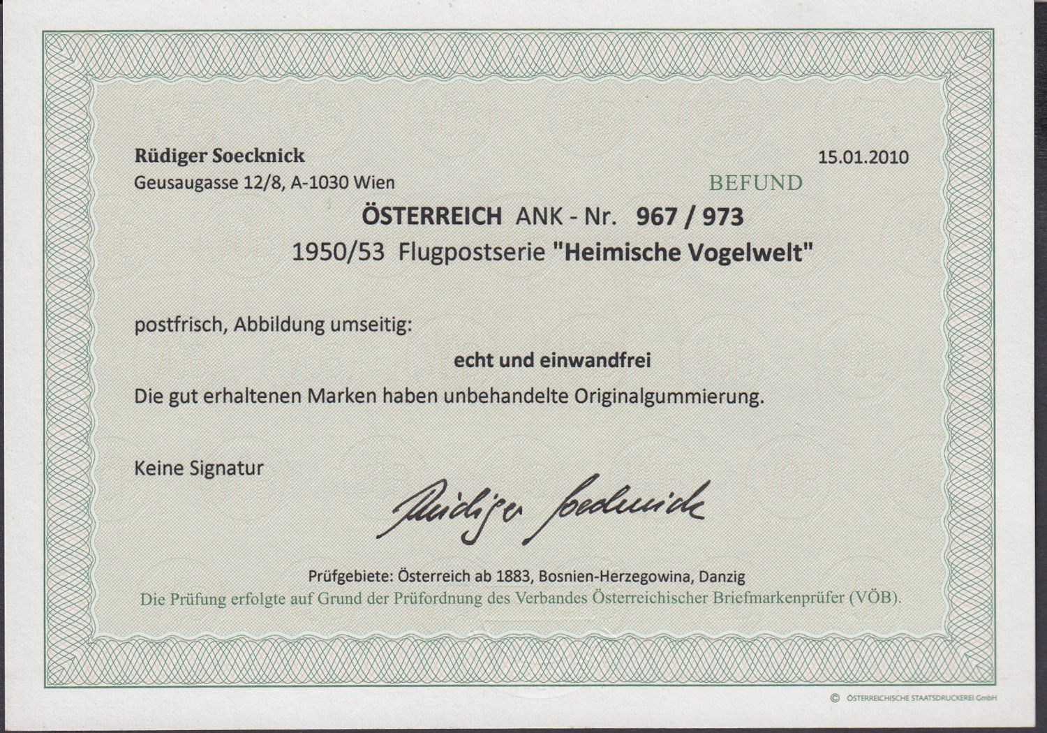 Vögel, postfrisch  geürft mit Attest  echt und enwandfrei    Sie erhalten den abgebildeten Artikel