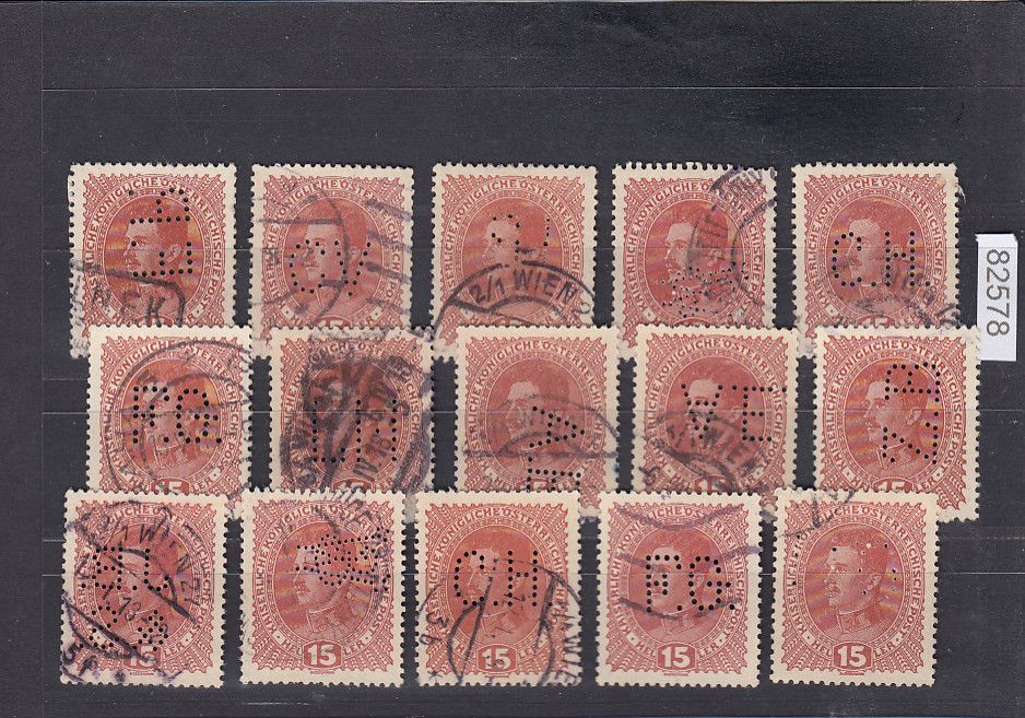 Wir lösen eine große Sammlung Perfins / Lochungen auf (ca. 20,000 Stk) hierraus erhalten Sie die im Bild zu sehen Marken. Erhaltung entnehmen Sie bitte dem Bild. Sie bekommen den abgebildeten Artikel