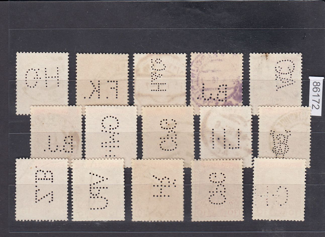 Wir lösen eine große Sammlung Perfins / Lochungen auf (ca. 20,000 Stk) hierraus erhalten Sie die im Bild zu sehen Marken. Erhaltung entnehmen Sie bitte dem Bild. Sie bekommen den abgebildeten Artikel