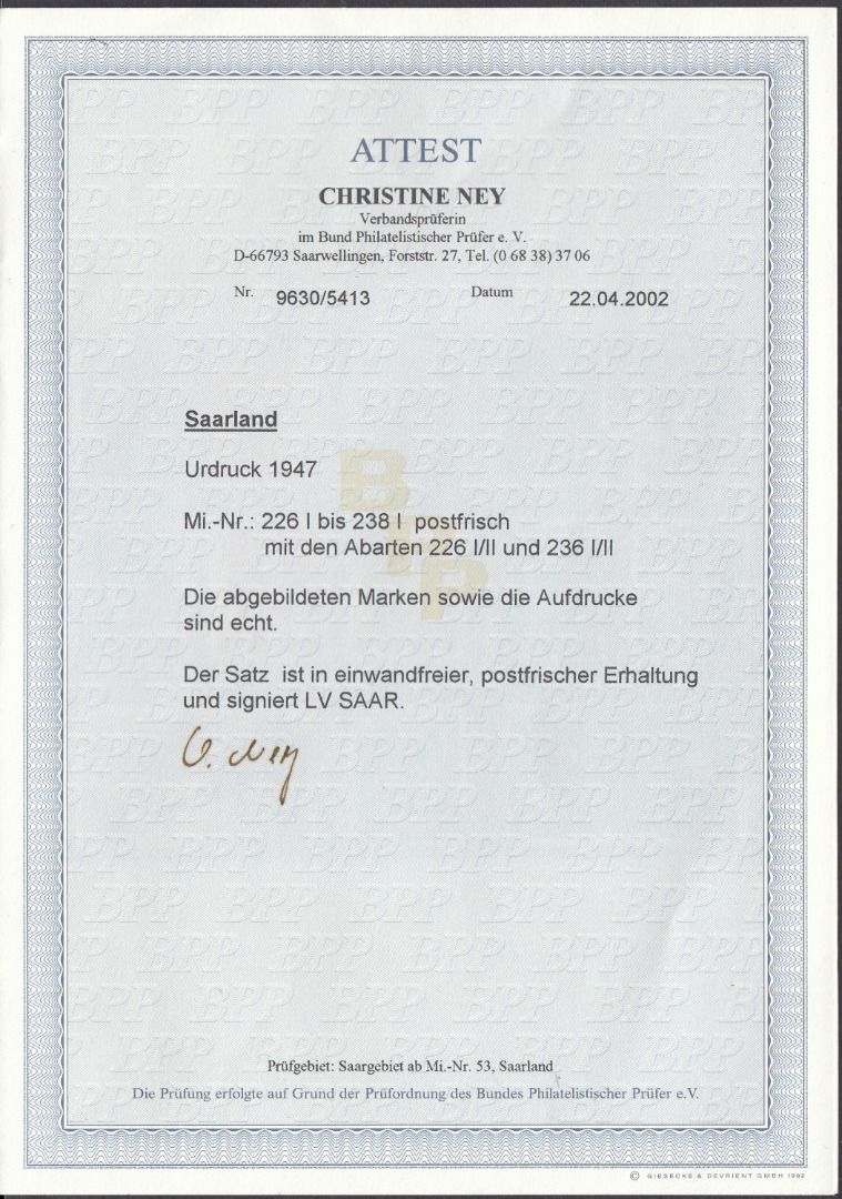 POSTFRISCH mit Attest echt und einwandfrei Michel 3500,00. Mit Plattenfehlern der Nummern 226 I/II 236 I/II . Sie erhalten den abgebildeten Artikel