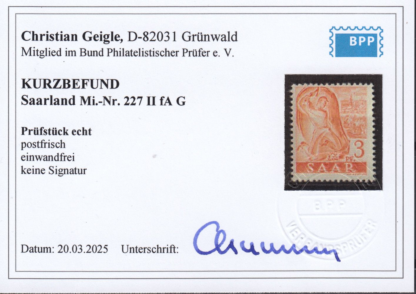Geprüft  Geigle  BPP    echt und einwandfrei