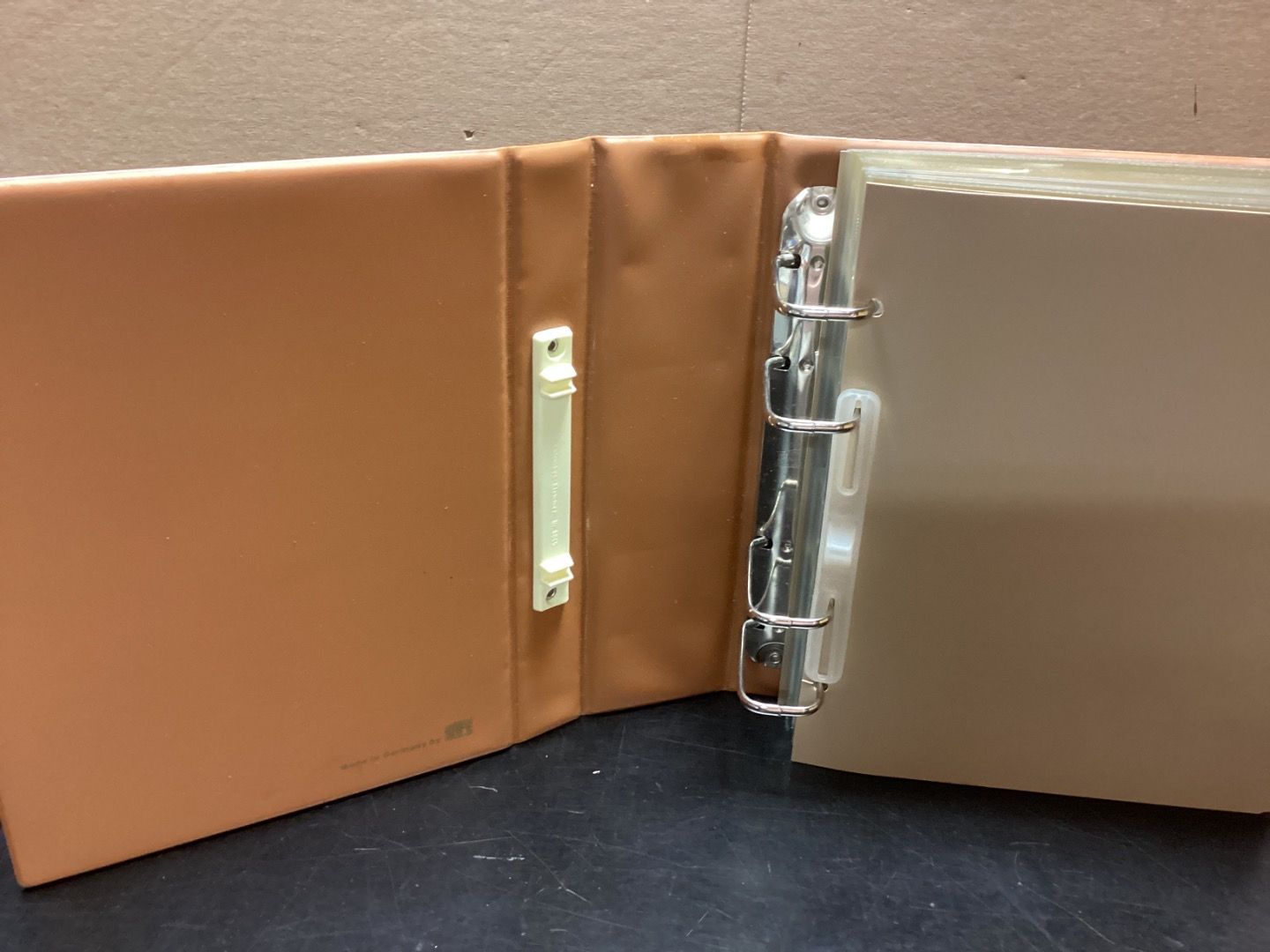 Gut erhalten. Gebraucht mit geringen Gebrauchsspuren . Album mit ca.50 Einlegeblätter( 2-geteilt) für Briefe, Karten , , FDC, etc. Ledergenarbte, gefütterte Einbanddecken. Farbe: Braun. Stabile 4- Ringe Mechanik, standfest, Patent- Klemmvorrichtung, die an der Innenseite des Einbanddeckels befestigt ist. Dadurch wird der Deckel und die Ringmechanik beim Schließen fest miteinander verbunden. Mehrfach Bestellen nur ein mal Versand Bezahlen. Sie erhalten den abgebildeten Artikel.