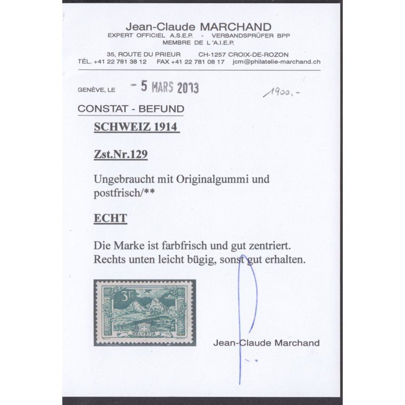 Schweiz 1914 : Mi.-Nr.:121 ** geprüft mit Befund   lesen