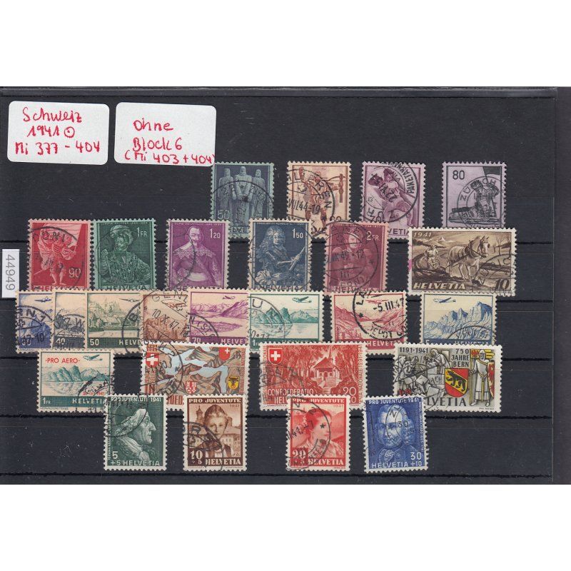 Schweiz 1941 : Mi.-Nr.: Komplett gestempelt  Ohne Block 6