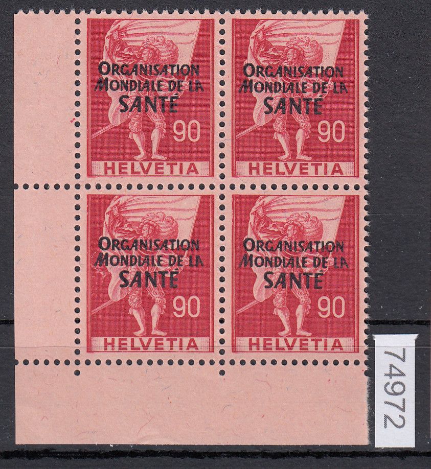 Schweiz/Ämter OMS/WHO 1948 : Mi.-Nr.: 18 **  Eckrand  4er.-Block
