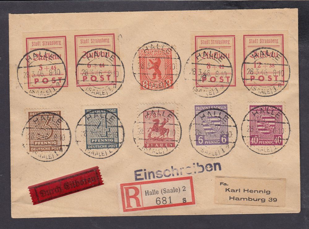 Strausberg, Mich.-Nr.: 34-37 B gestempelt auf Brief