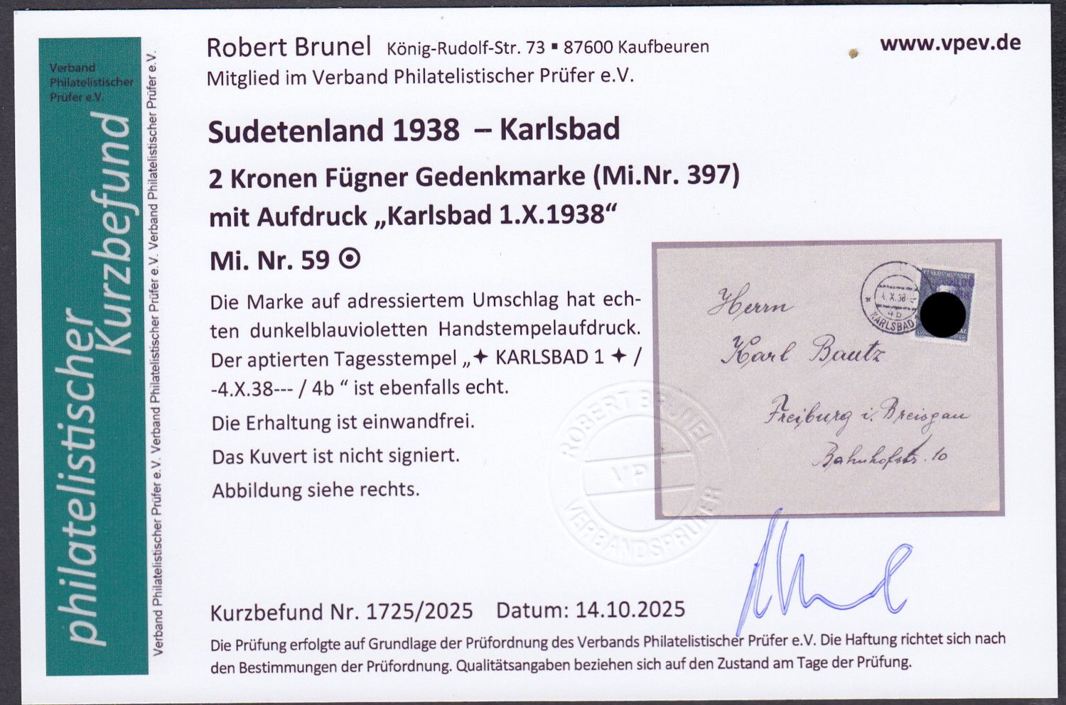 geprüft Brunel mit Befund  echt und einwandfrei
