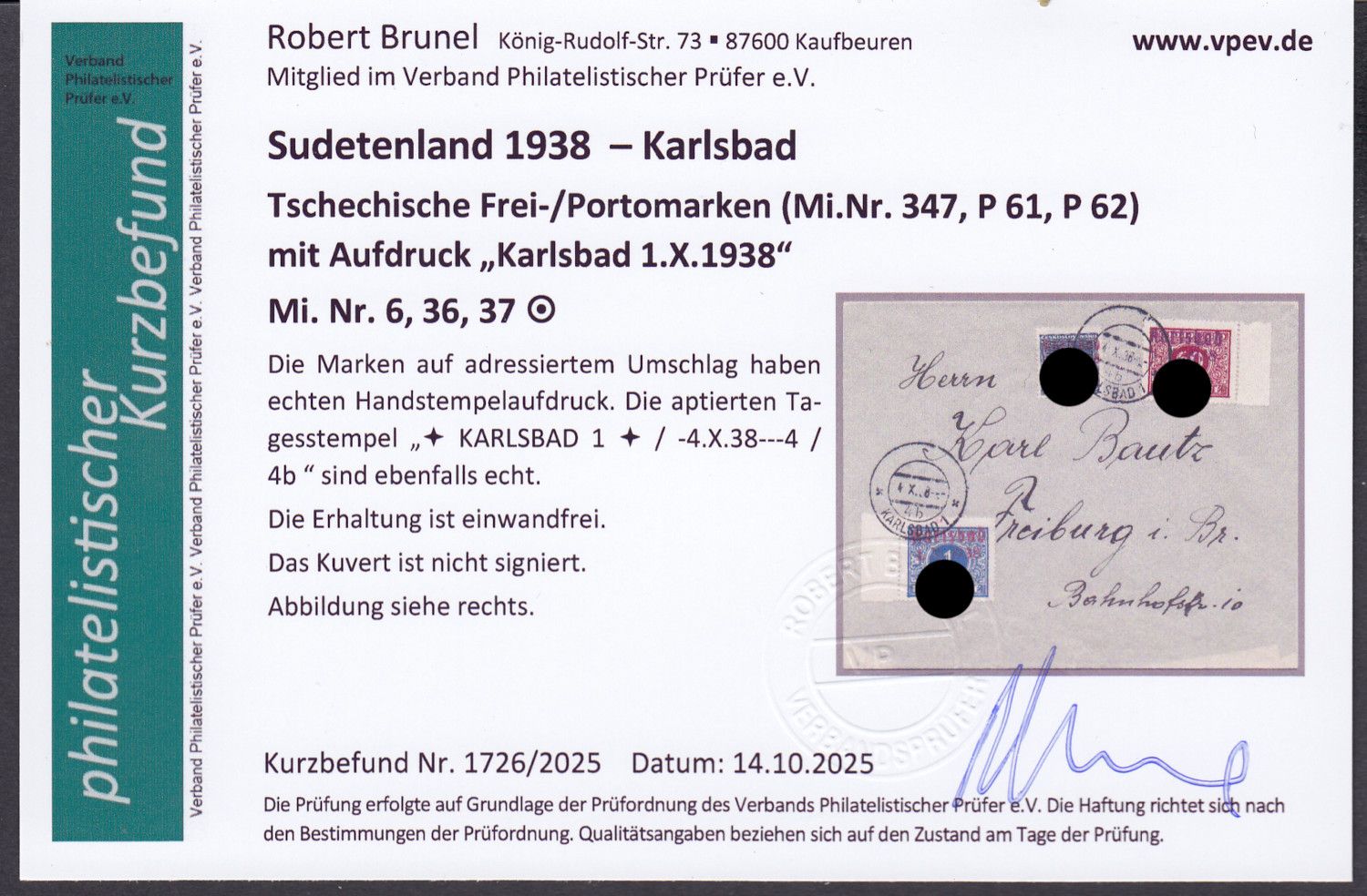 geprüft Brunel mit Befund  echt und einwandfrei