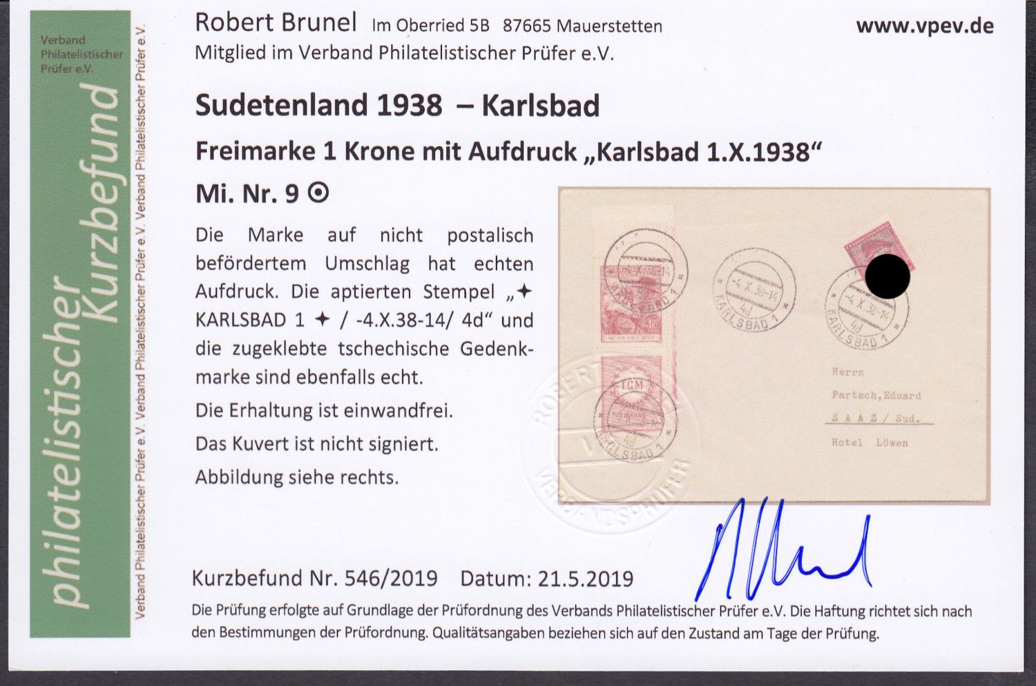 geprüft Brunel mit Befund  echt und einwandfrei