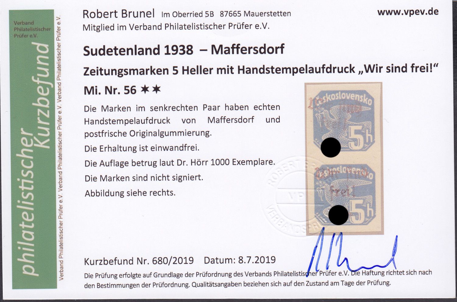 Befund Brunel "echt und einwandfrei" Michel 240,00 Sie erhalten den abgebildeten Artikel