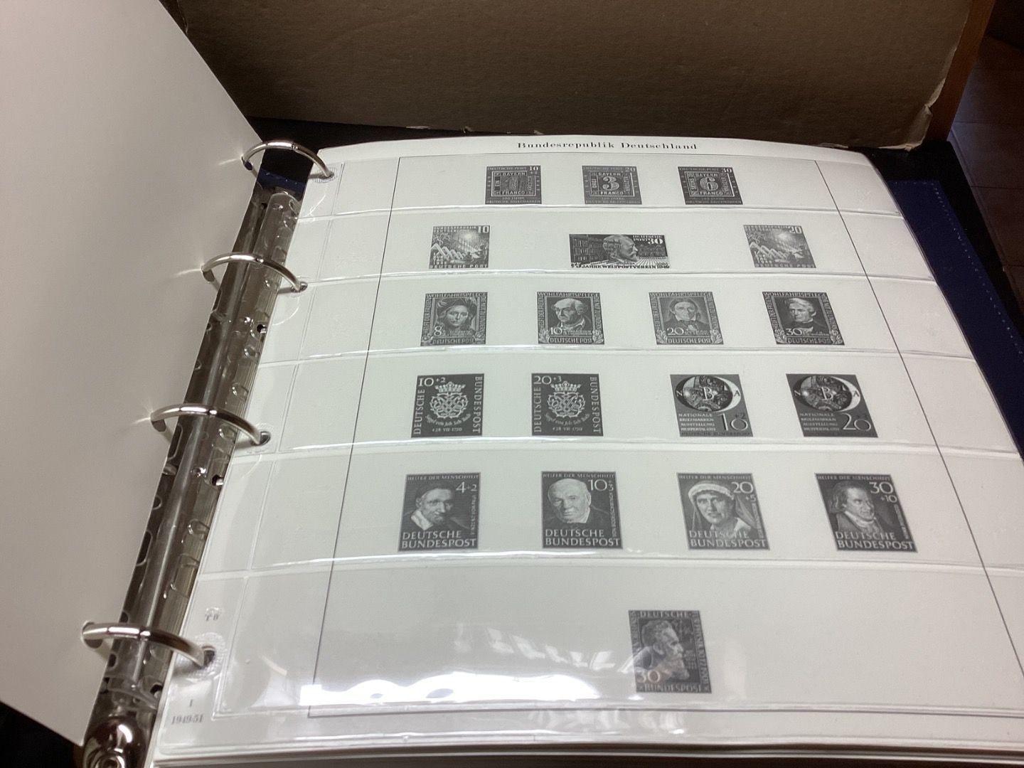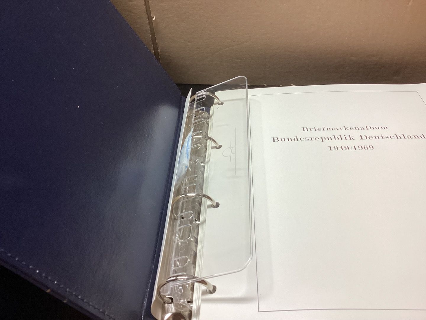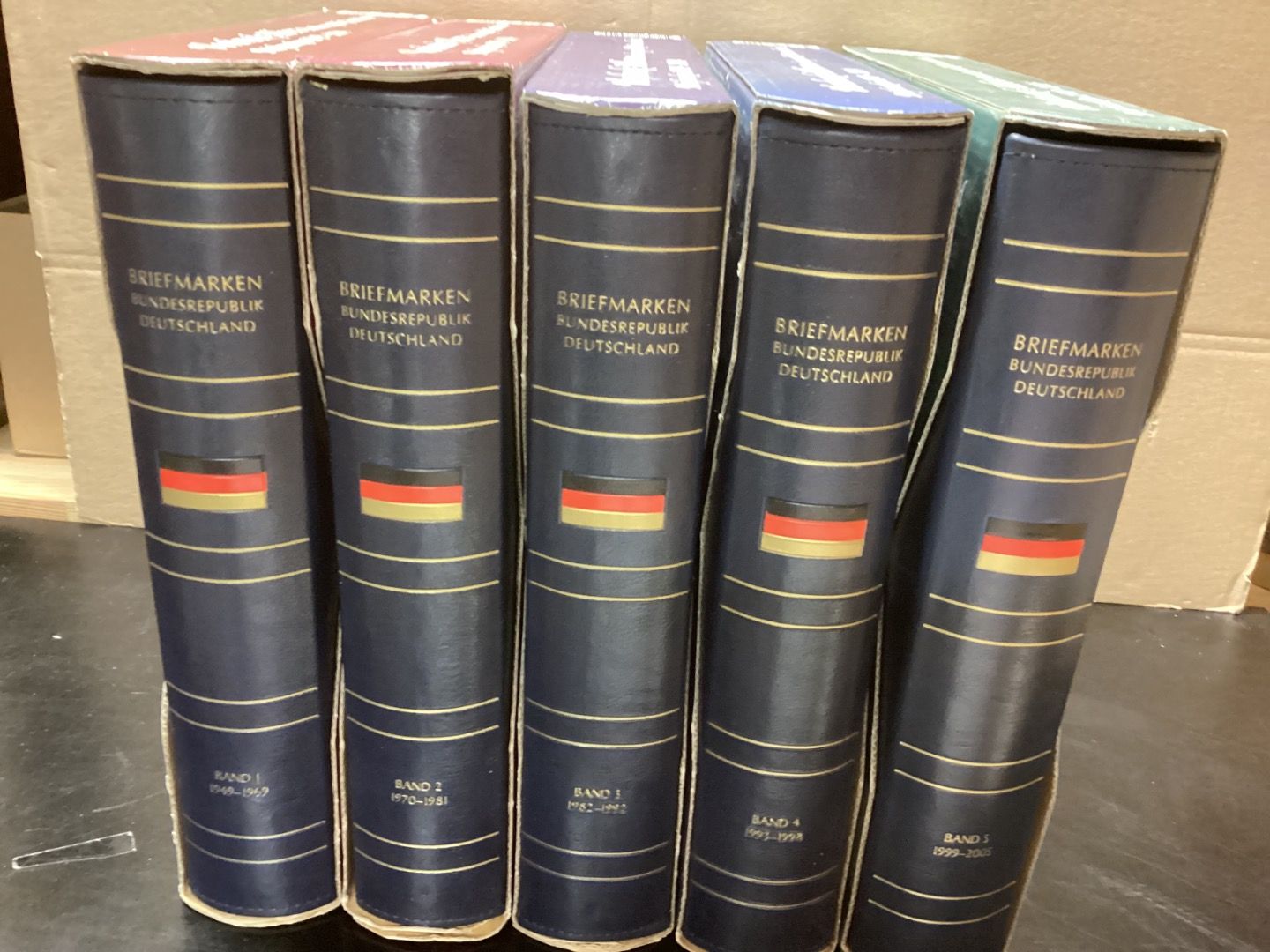 5 Alben + Schuber ( Pappe).Vordrucke Bund 1949-2005 komplett ,ohne Marken mit ganzseitigen Folientaschen.Gebraucht mit geringen Gebrauchsspuren . Gut erhalten. Sie erhalten den abgebildeten Artikel.Mehrfach bestellen,nur einmal Porto.